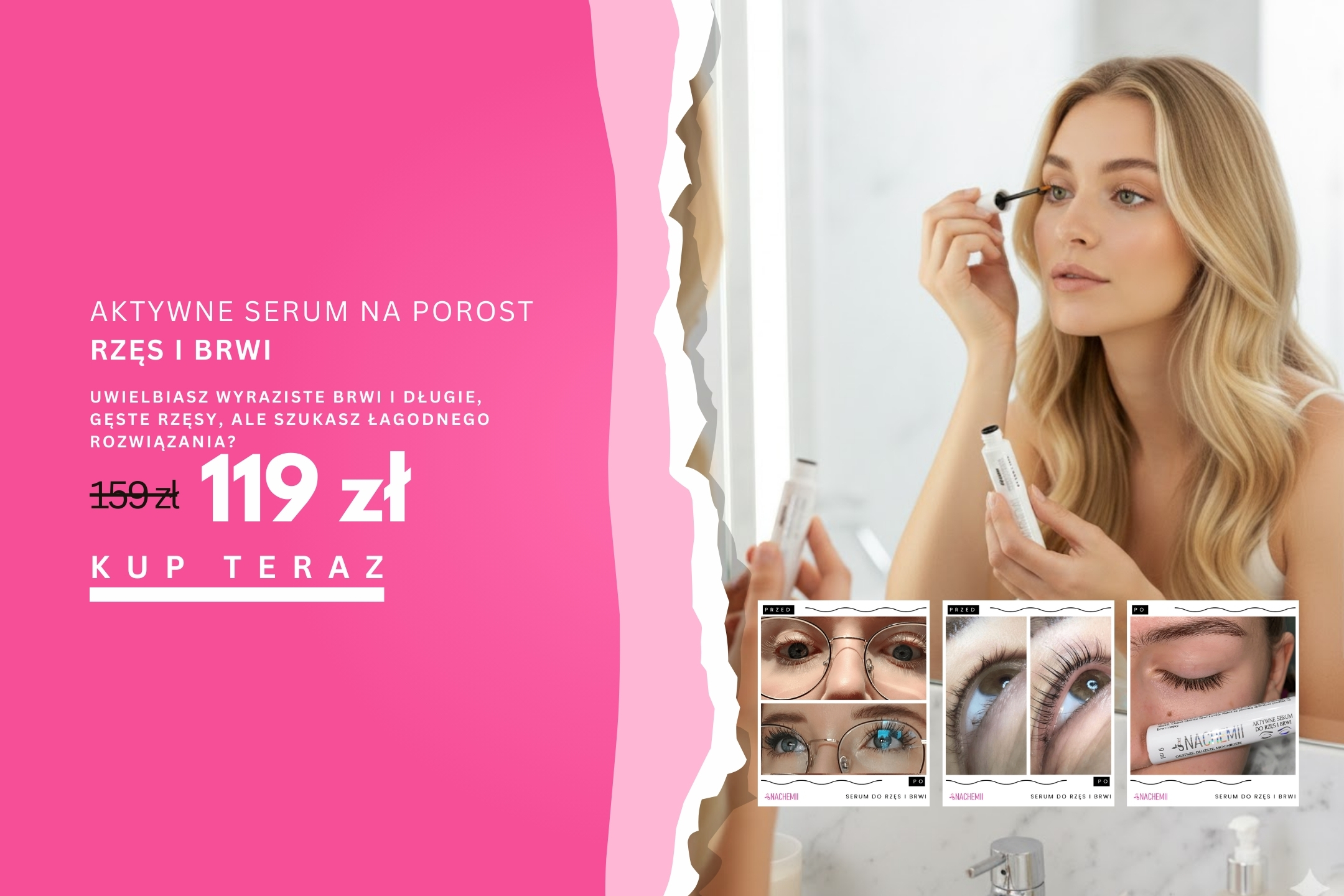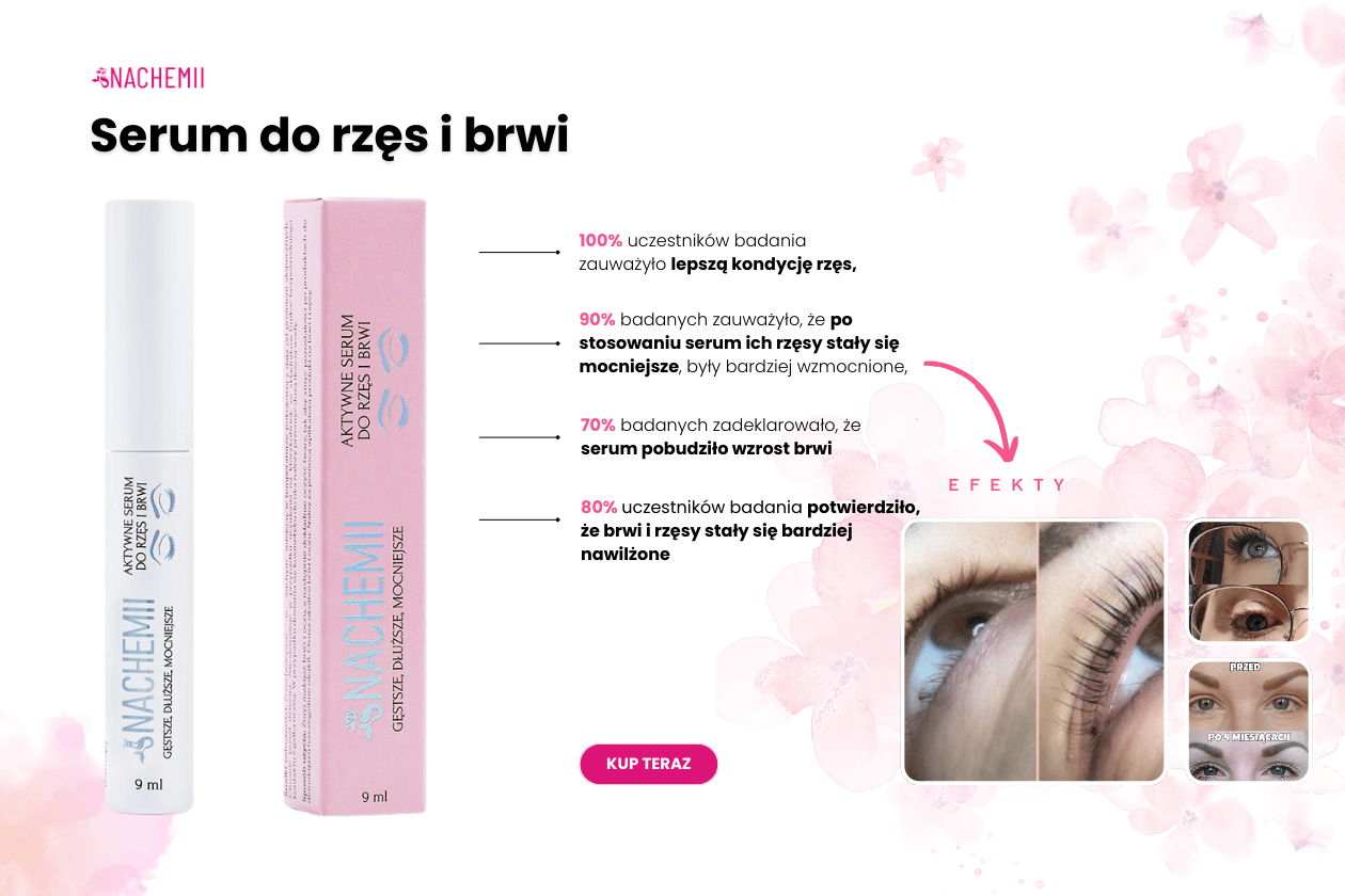 Aktywne serum do rzęs i brwi to drugi kosmetyk z tworzącej się linii kosmetyków NACHEMII. Przedstawimy Wam trzy składniki , dzięki którym serum jest wyjątkowe i skuteczne. Serum na porost brwi i rzęs NACHEMII to wyjątkowy produkt, który wyróżnia naturalny skład, aż 97% składników naturalnych.